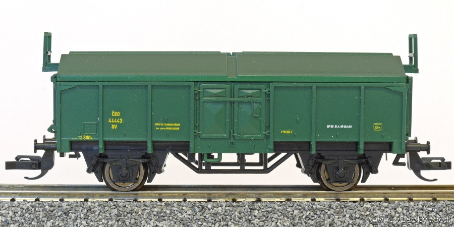 | nákladní vůz zelený do pracovního vlaku se zelenou odsuvnou střechou |