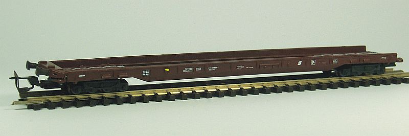 Popis   plošinový nákladní vůz hnědý na přepravu aut RoLa