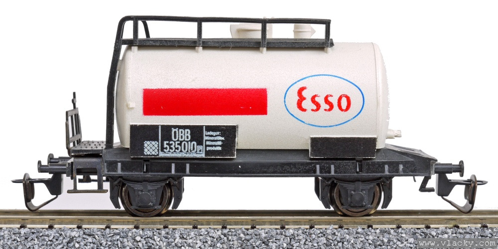 kotlový vůz bílý s červeným pruhem a s logem „Esso“