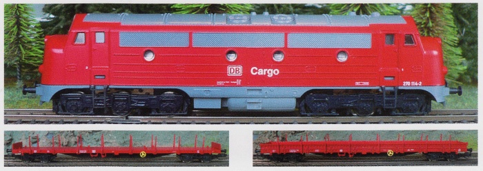 | set dieselové lokomotivy Nohab, plošinového a nízkostěnného vozu |