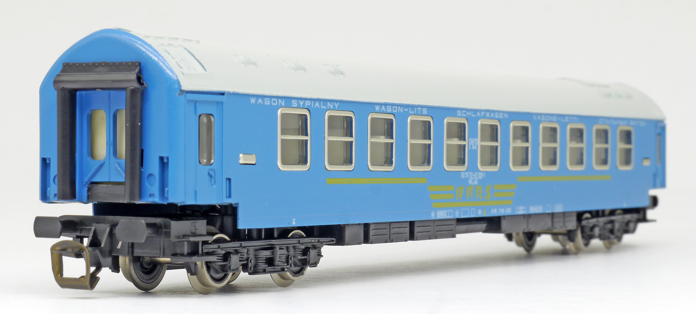| lůžkový vůz modrý s šedou střechou „WARS“ |
