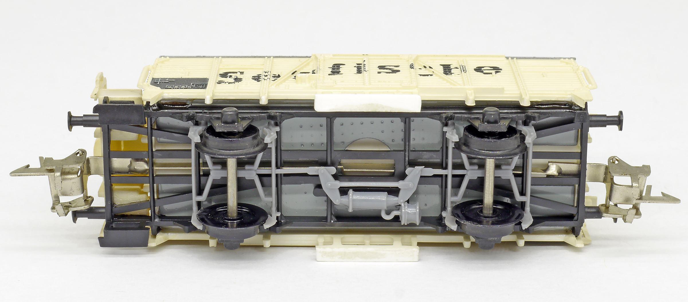 měřítko 1:120 - rozchod kolejí 12 mm nenormované uchycení spřáhla 81,5 mm - celková délka modelu přes nárazníky 2 - celkový počet náprav nebo rozložení náprav 20 g - hmotnost netto - pouze model