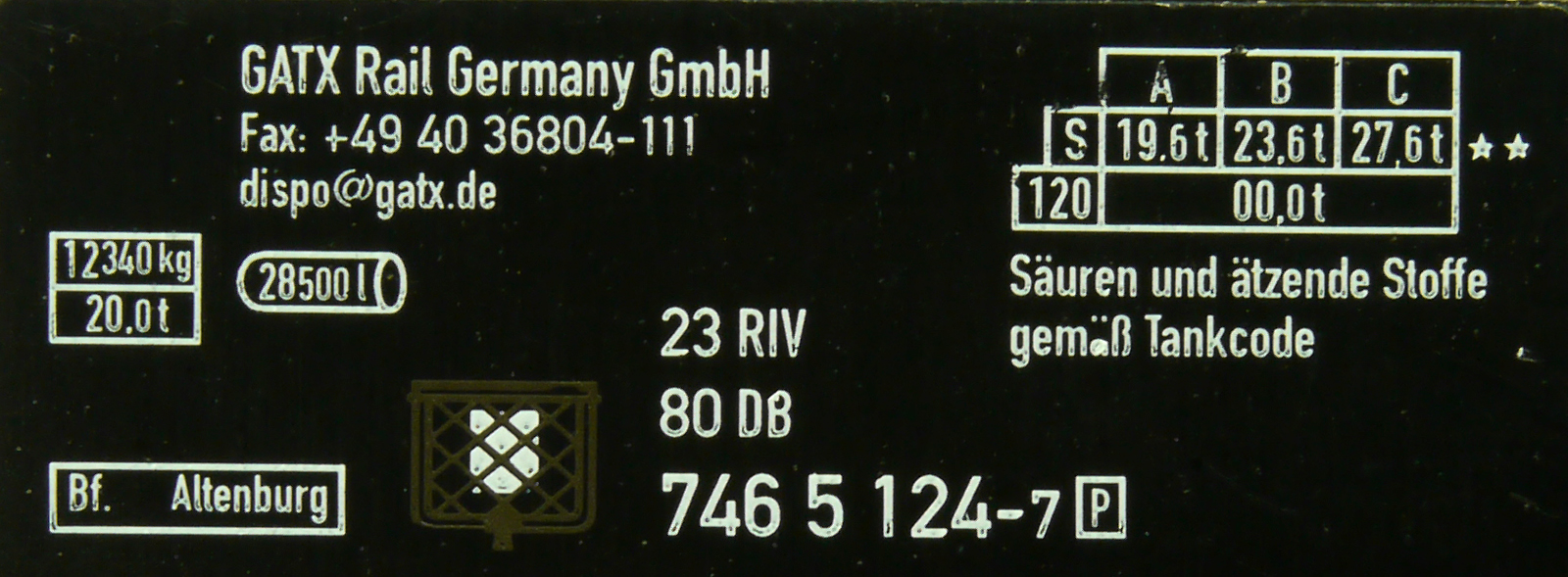 | • 23 80 746 5 124-7 | → | Z - kotlový (cisternový) vůz |