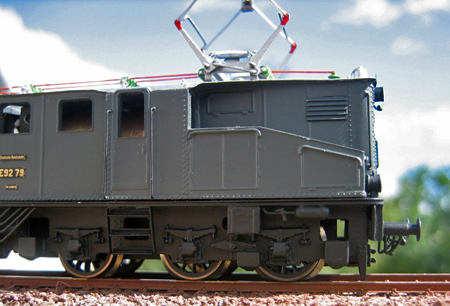 tmavěšedá s černým pojezdem dvoudílná nákladní lokomotiva