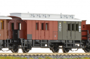 služební-poštovní vůz hnědý-zelený se světle šedou střechou