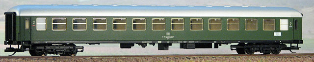 | rychlíkový vůz zelený se světlešedou střechou 2. tř. |