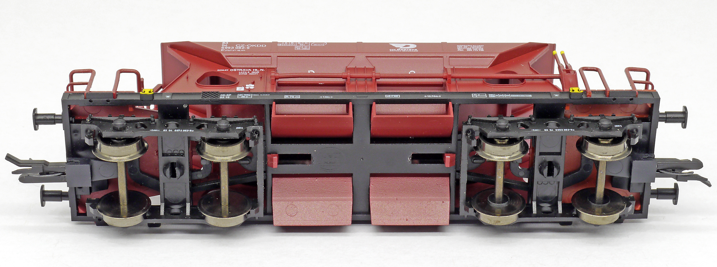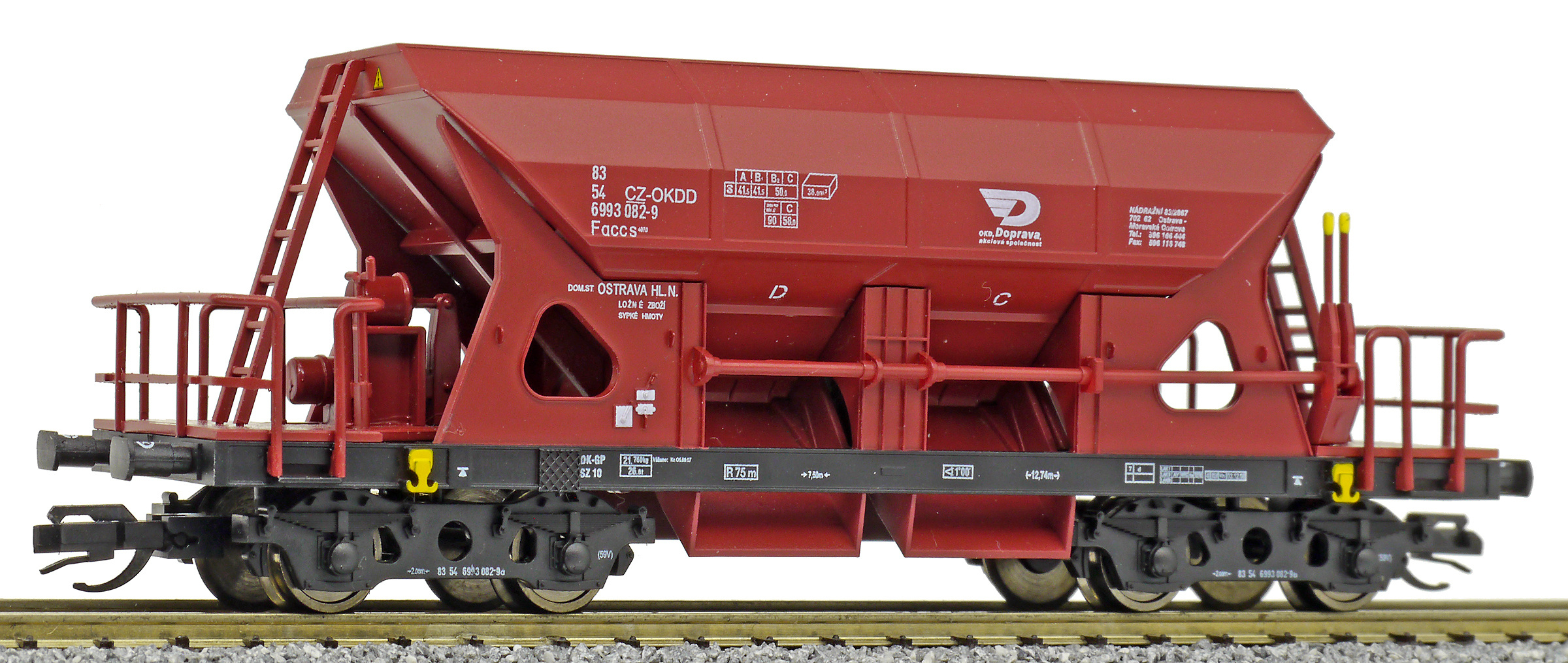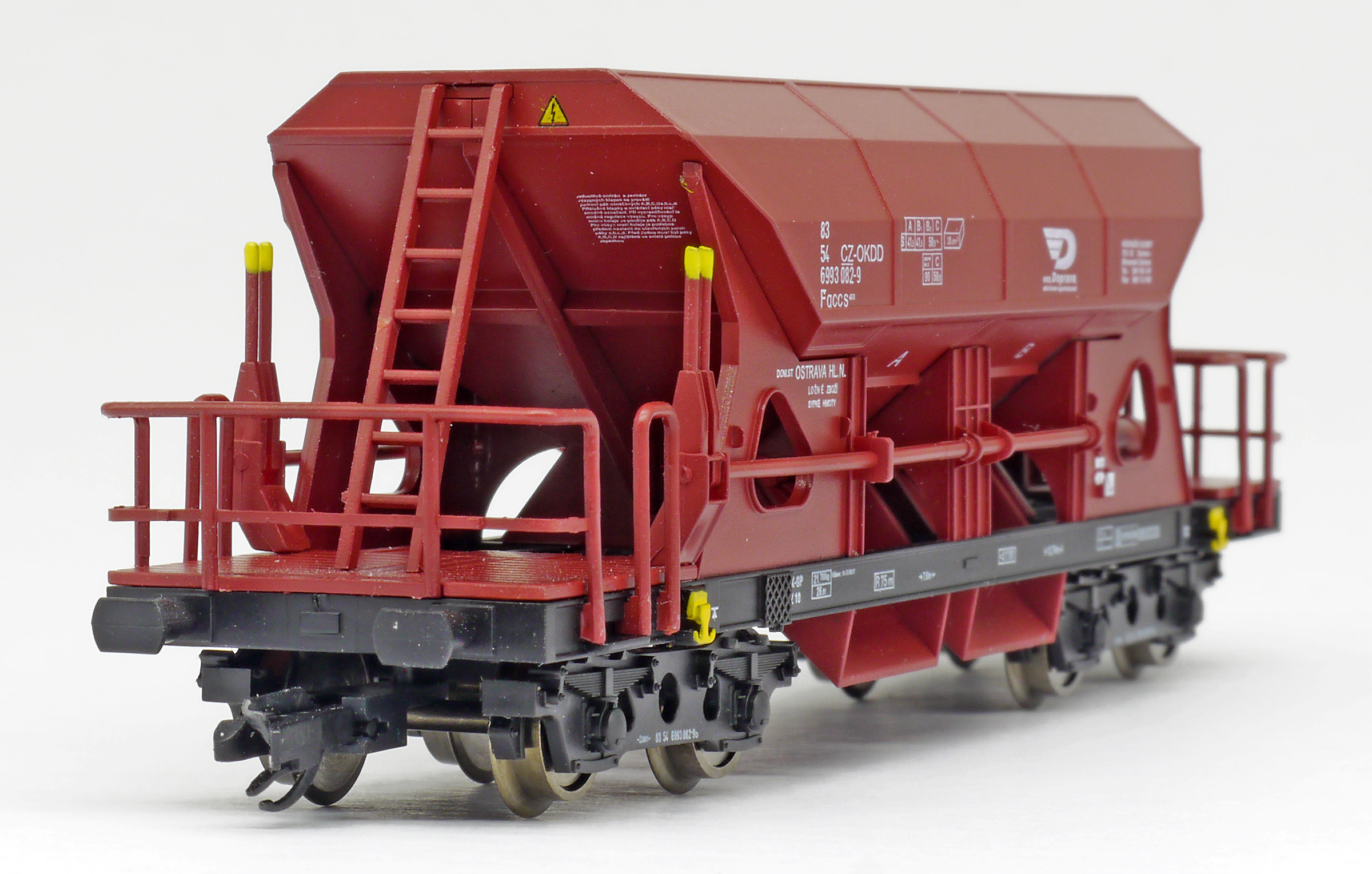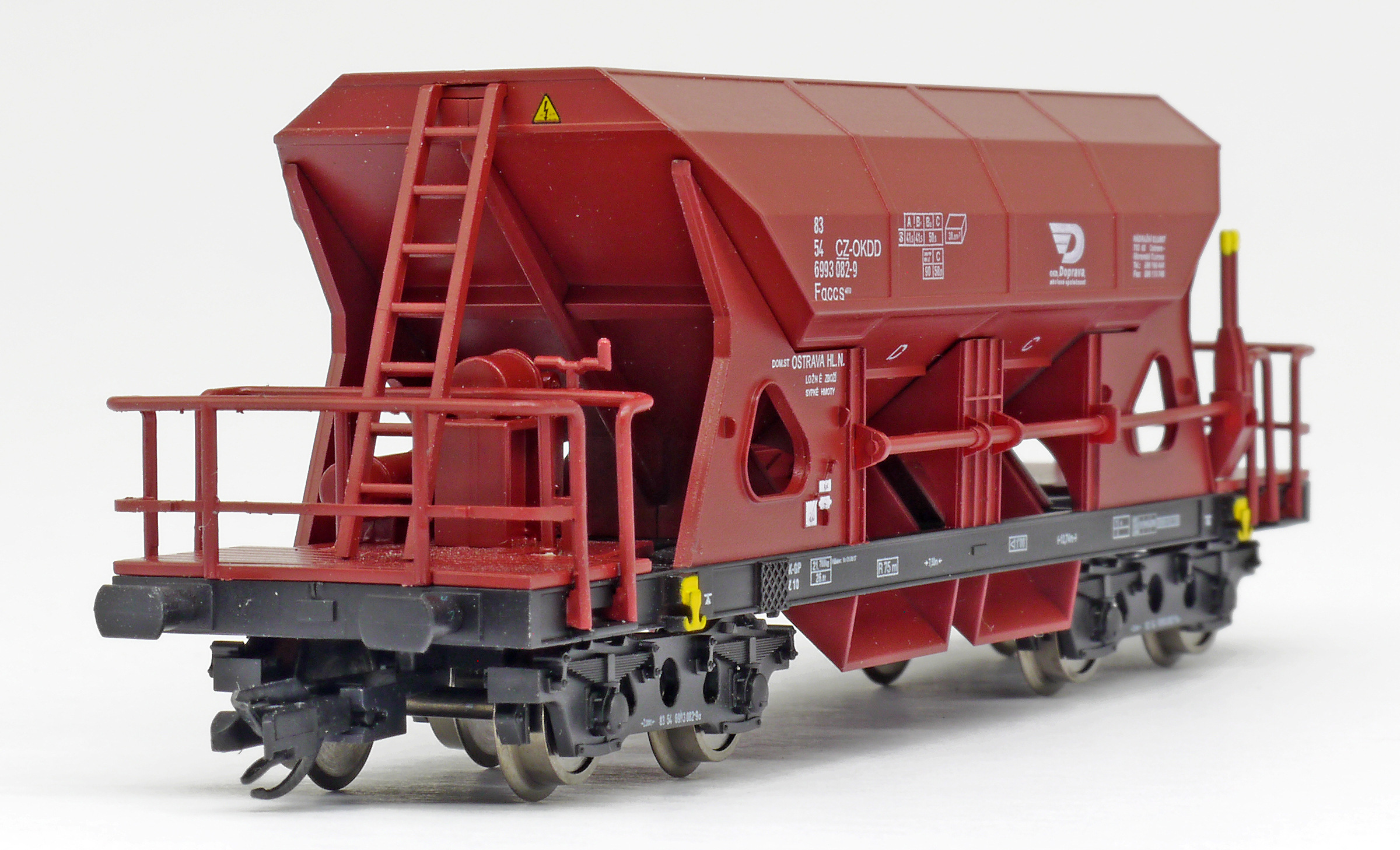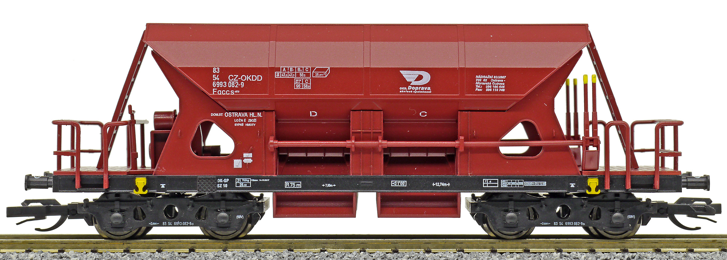 | nákladní samovýsypný vůz červenohnědý s černým rámem „OKD Doprava” |