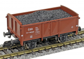 | otevřený nákladní vůz červenohnědý ložený uhlím |