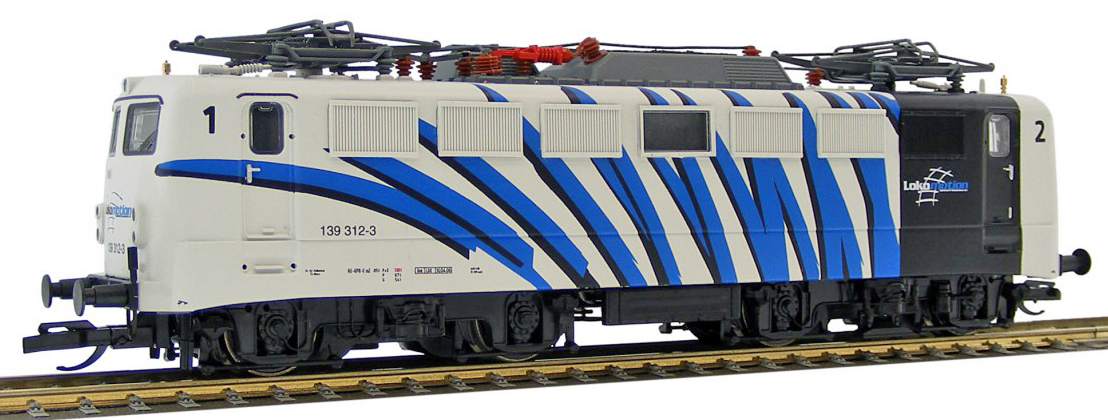 | elektrická lokomotiva bílá s pruhy „LOKOMOTION“ |