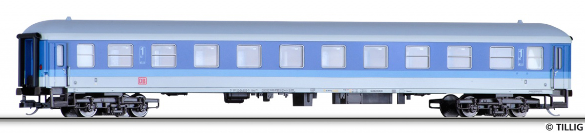 Popis   modrý-bílý v barevném schematu „InterRegio“ 1. tř.