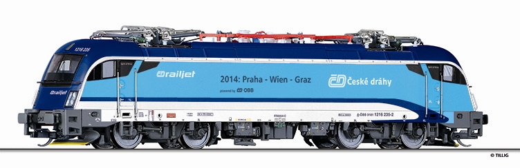 | elektrická lokomotiva modrá-bílá „ČD Railjet / Spirit of Brno“ |