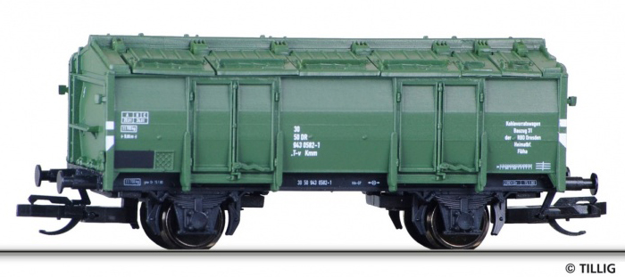 | nákladní vůz s klapkami zelený do pracovního vlaku |