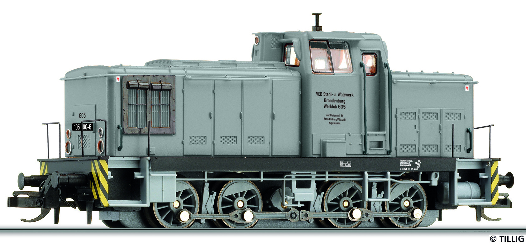 měřítko 1:120 - rozchod kolejí 12 mm osvětlení - 3 reflektory vpředu, 2 světla vzadu, přepínatelné podle směru jízdy nenormované uchycení spřáhla digitální rozhraní podle NEM 651 s konektorem 6pin 91 mm - celková délka modelu přes nárazníky 4 - celkový počet náprav nebo rozložení náprav