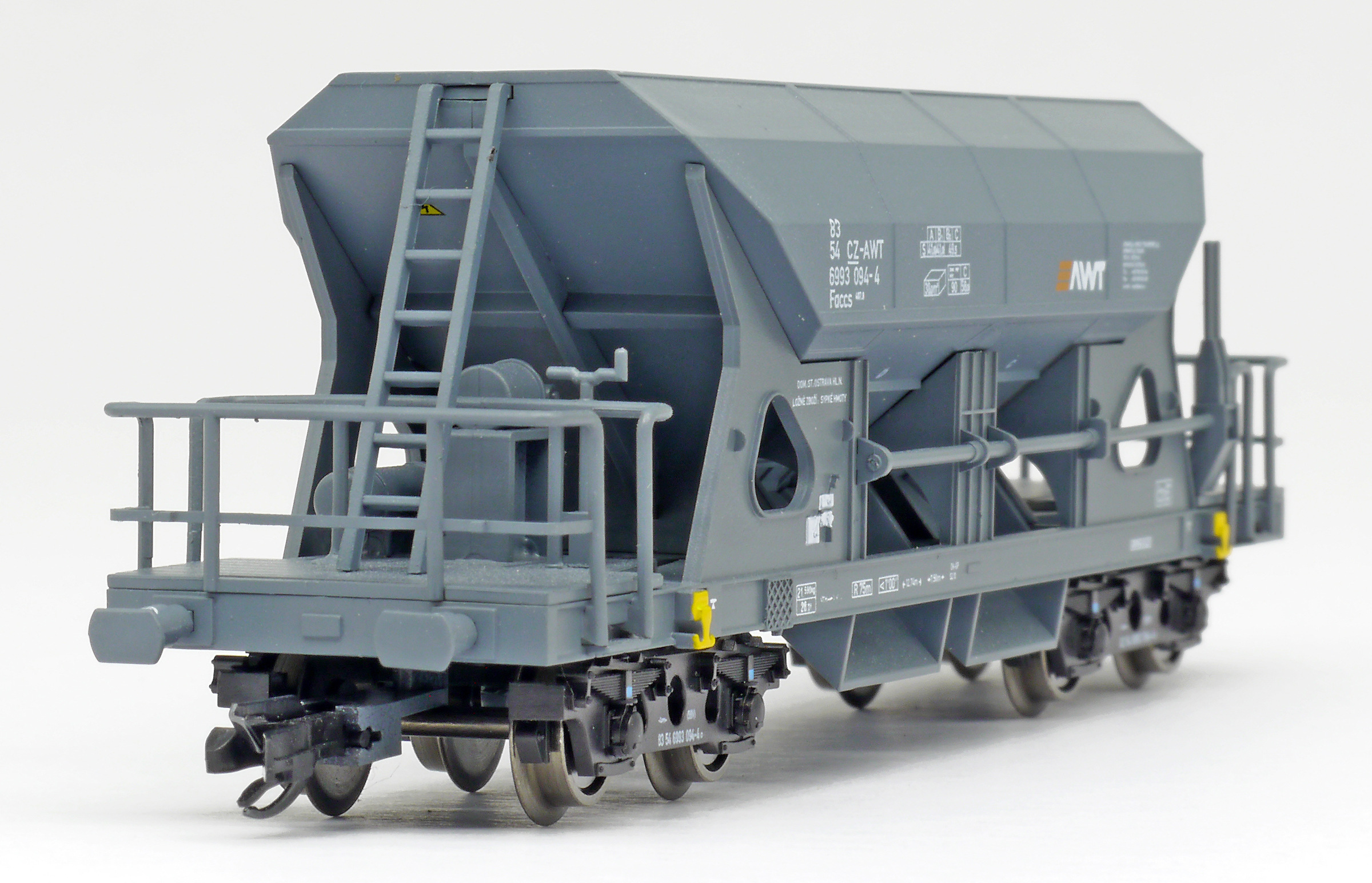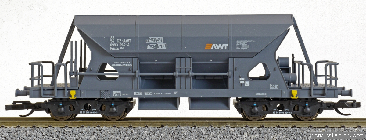 | nákladní samovýsypný vůz šedý s logem „AWT“ |