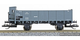 | otevřený vůz šedý s loukoťovými koly a s brzdařskou budkou |