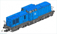Popis   dieselová lokomotiva modrá s černým rámem a pojezdem