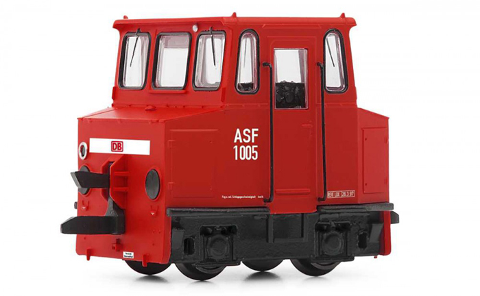 Popis   červená akumulátorová posunovací lokomotiva
