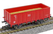 | otevřený vůz červený s nákladem písku do požárního vlaku |