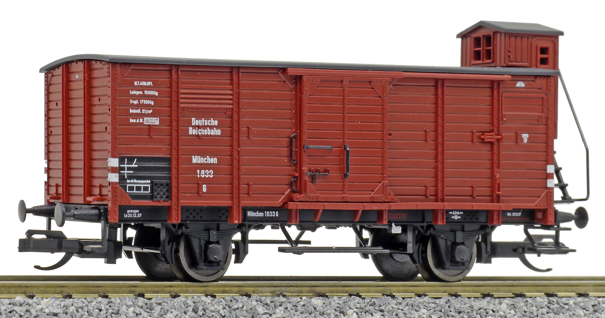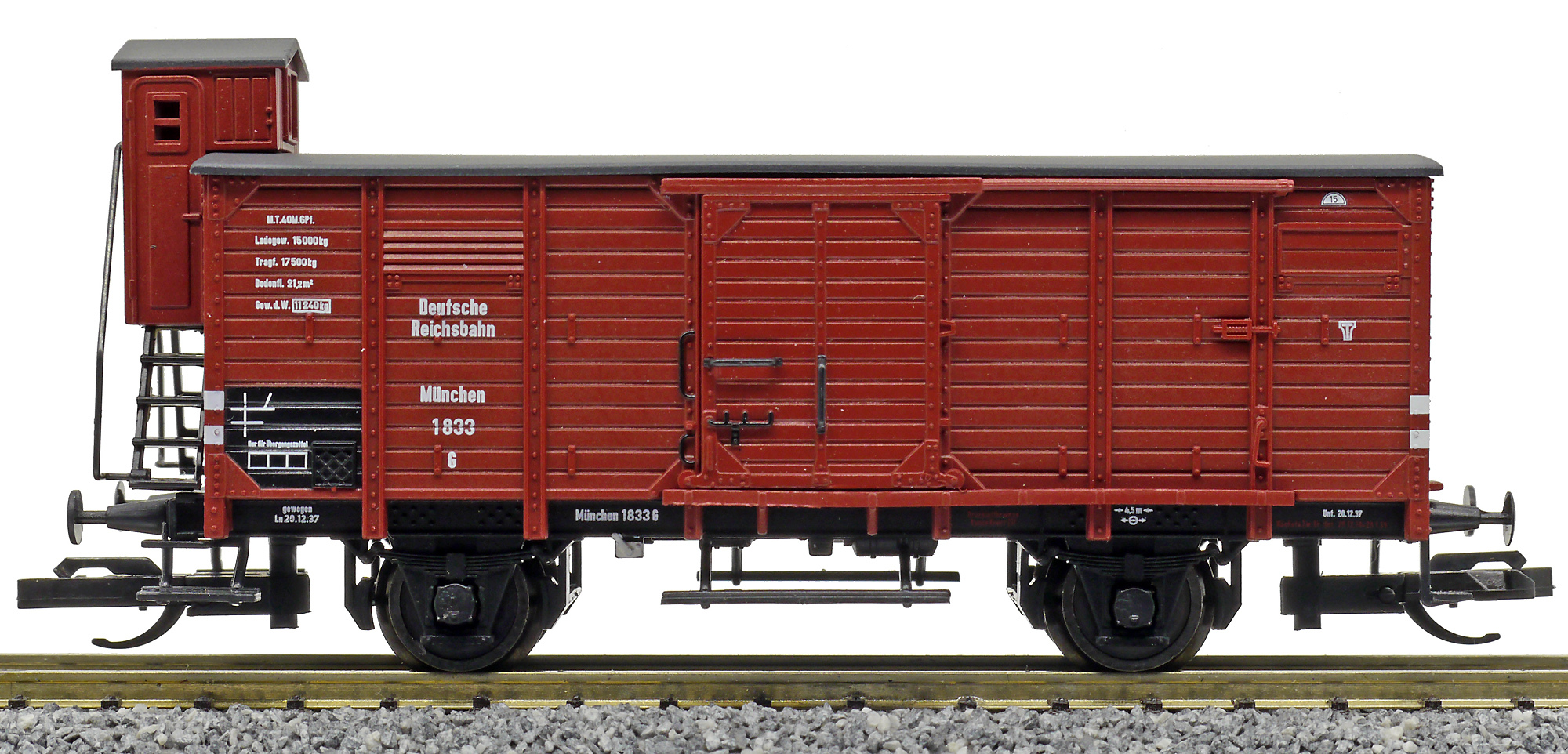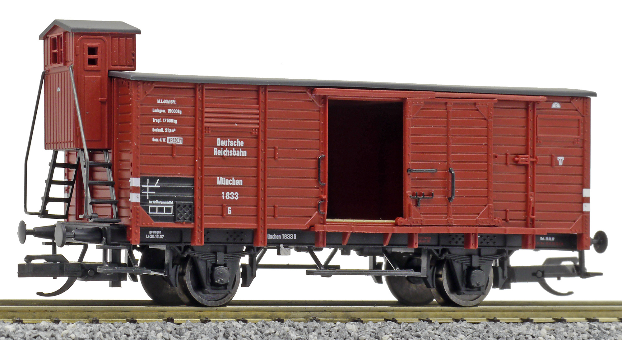 | krytý nákladní vůz červenohnědý s brzdařskou budkou |