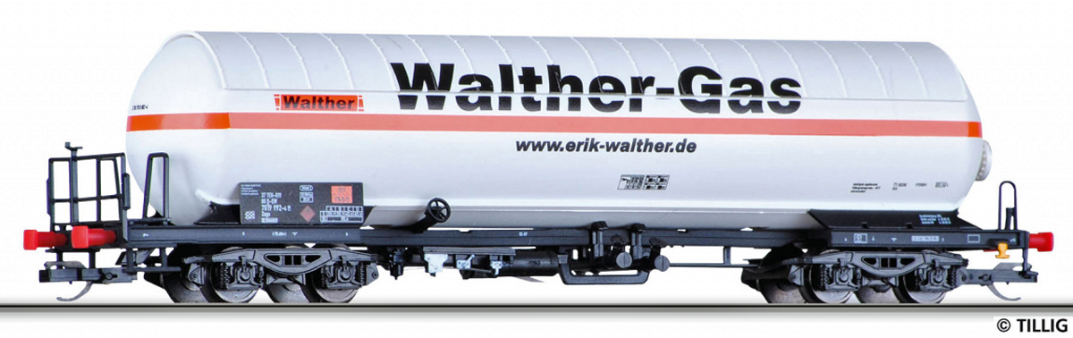 | cisternový vůz světle šedý se slunečním štítem „Walter-Gas“ |