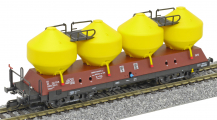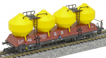 | nákladní samovýsypný vůz hnědý se žlztými nádobami „Cement Hranice“ |