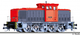 | dieselová lokomotiva v barevném schematu „Erfurter Bahn Service GmbH“ |