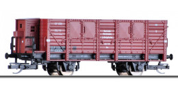 | otevřený nákladní vůz červenohnědý s brzdařskou budkou |