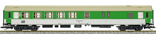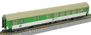 | rychlíkový vůz zelený-bílý s šedou střechou 2. tř. a zavazadlovým oddílem |