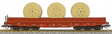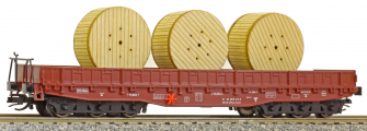| nízkostěnný nákladní vůz červehonědý s nákladem kabelových cívek |