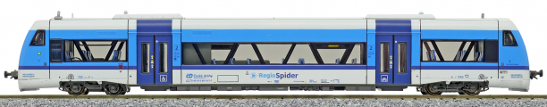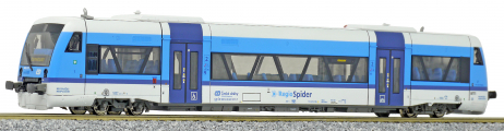 | motorový vůz v barevném schematu „Najbrt“ s logem „RegioSpider“ |
