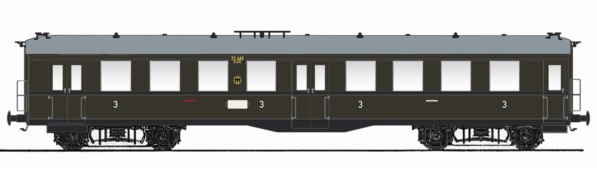 | osobní vůz tmavě zelený s černou střechou 3. tř. |