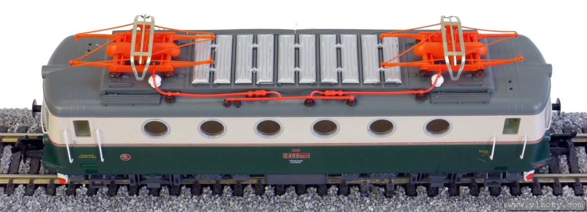 Popis   elektrická lokomotiva v nátěru zelená-slonová kost