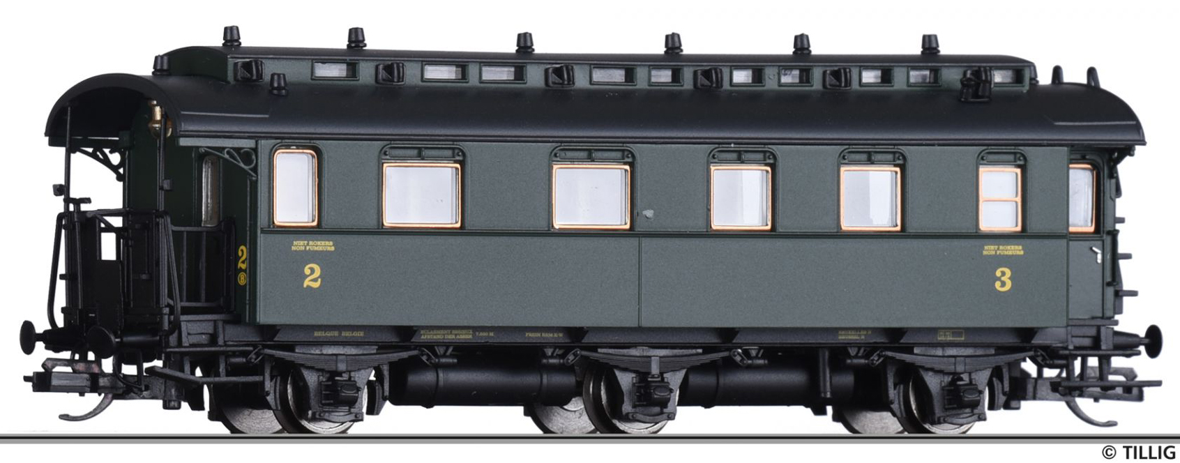 | oddílový osobní vůz tmavě zelený s černou střechou 2./3. tř. |