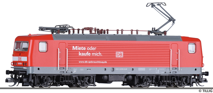 | elektrická lokomotiva červená, šedá střecha a rám, černý pojezd „db-gebrauchtzug.de“ |