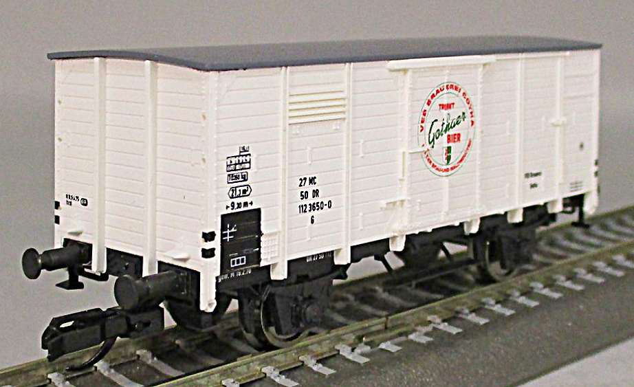 | krytý nákladní vůz bílý s šedou střechou „Gothaer Bier“ |