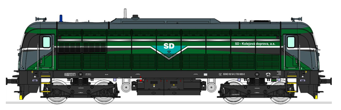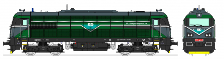 | dieselová lokomotiva v barevném schematu „SD-KD“ |