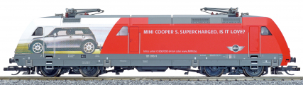 | elektrická lokomotiva s reklamním potiskem „Mini BMW“ |