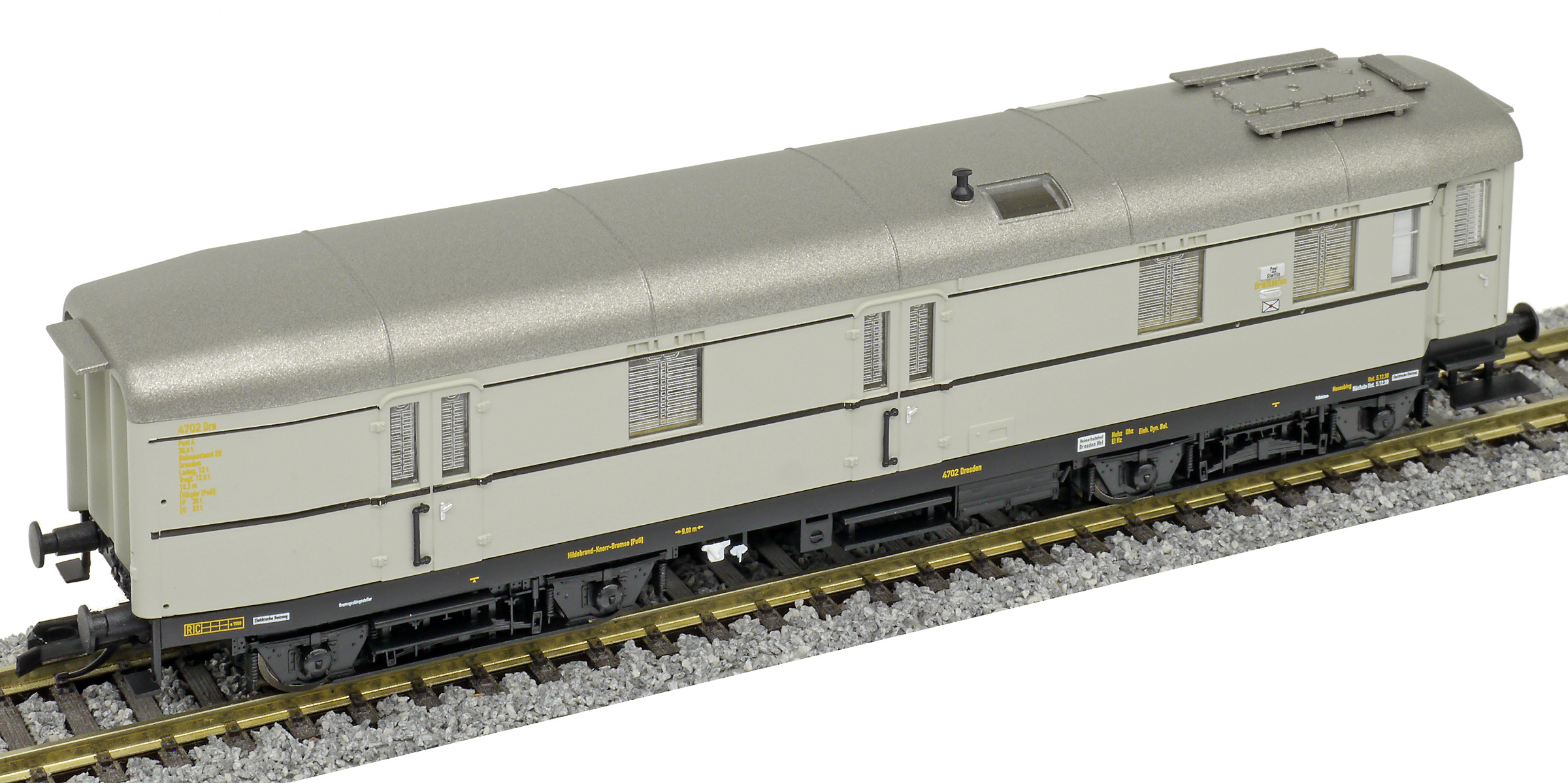 měřítko 1:120 - rozchod kolejí 12 mm vnitřní interiér vozu je možná instalace osvětlení interiéru kinematika krátkého spřáhla (KKK) podle normy NEM 358 136 mm - celková délka modelu přes nárazníky 4 - celkový počet náprav nebo rozložení náprav 90 g - hmotnost brutto - model včetně prodejního obalu