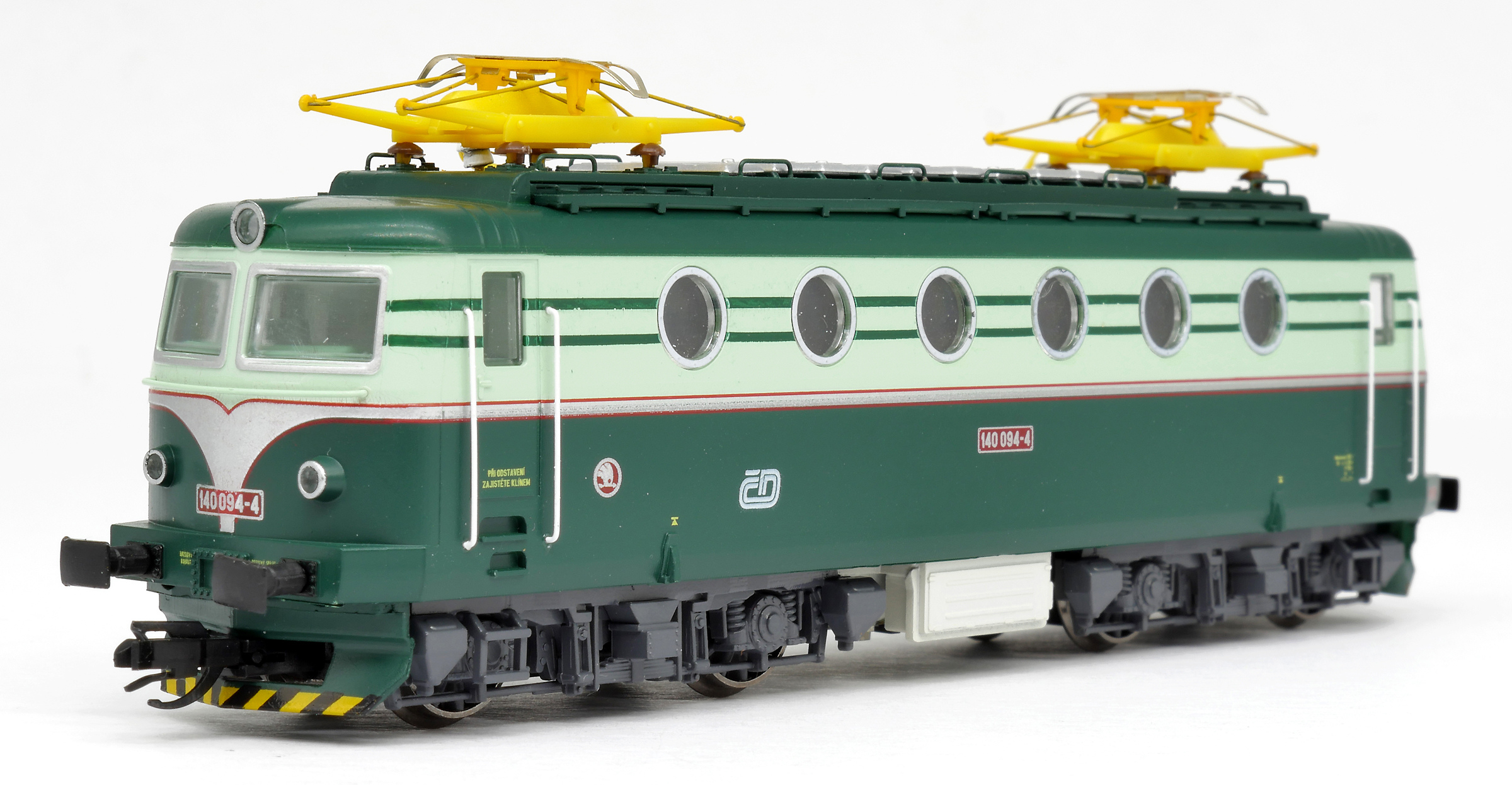 Popis   elektrická lokomotiva v nátěru tmavě zelená-světle zelená, žluté pantografy