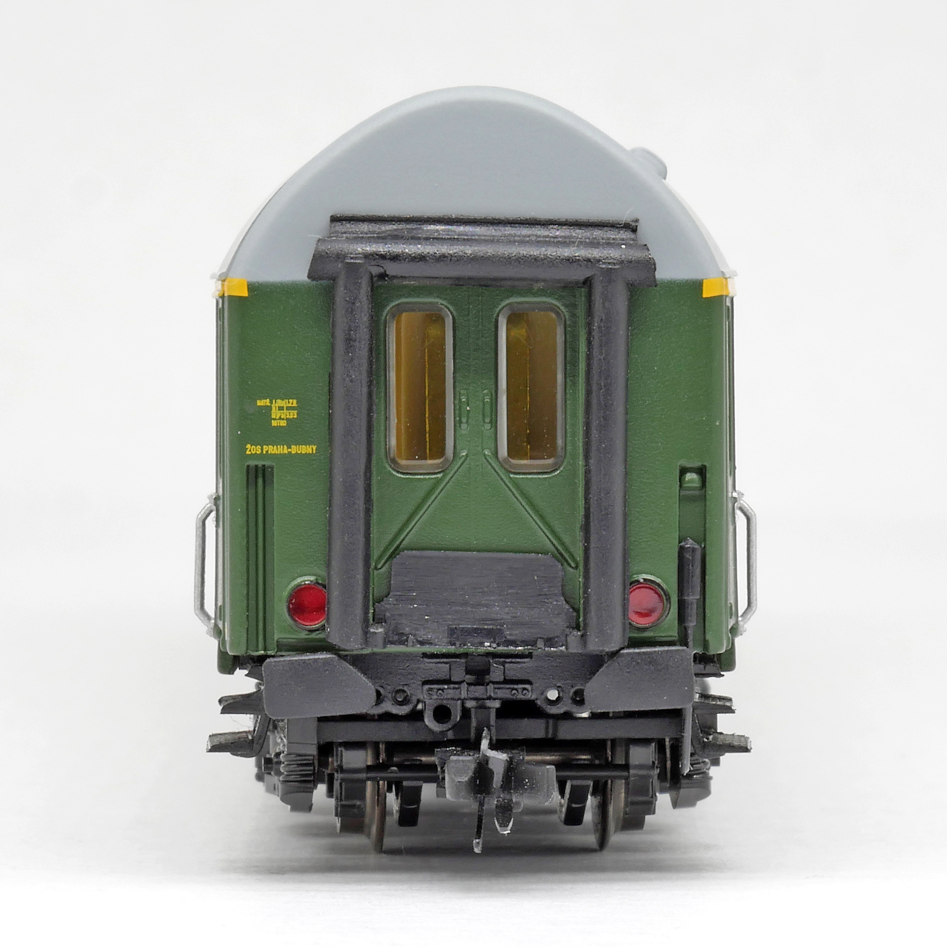| rychlíkový vůz zelený s šedou střechou 1. tř. „Ostravan“ |