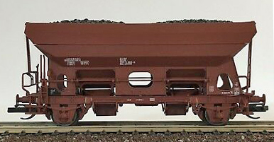 | nákladní samovýsypný vůz červenohnědý s nákladem uhlí |