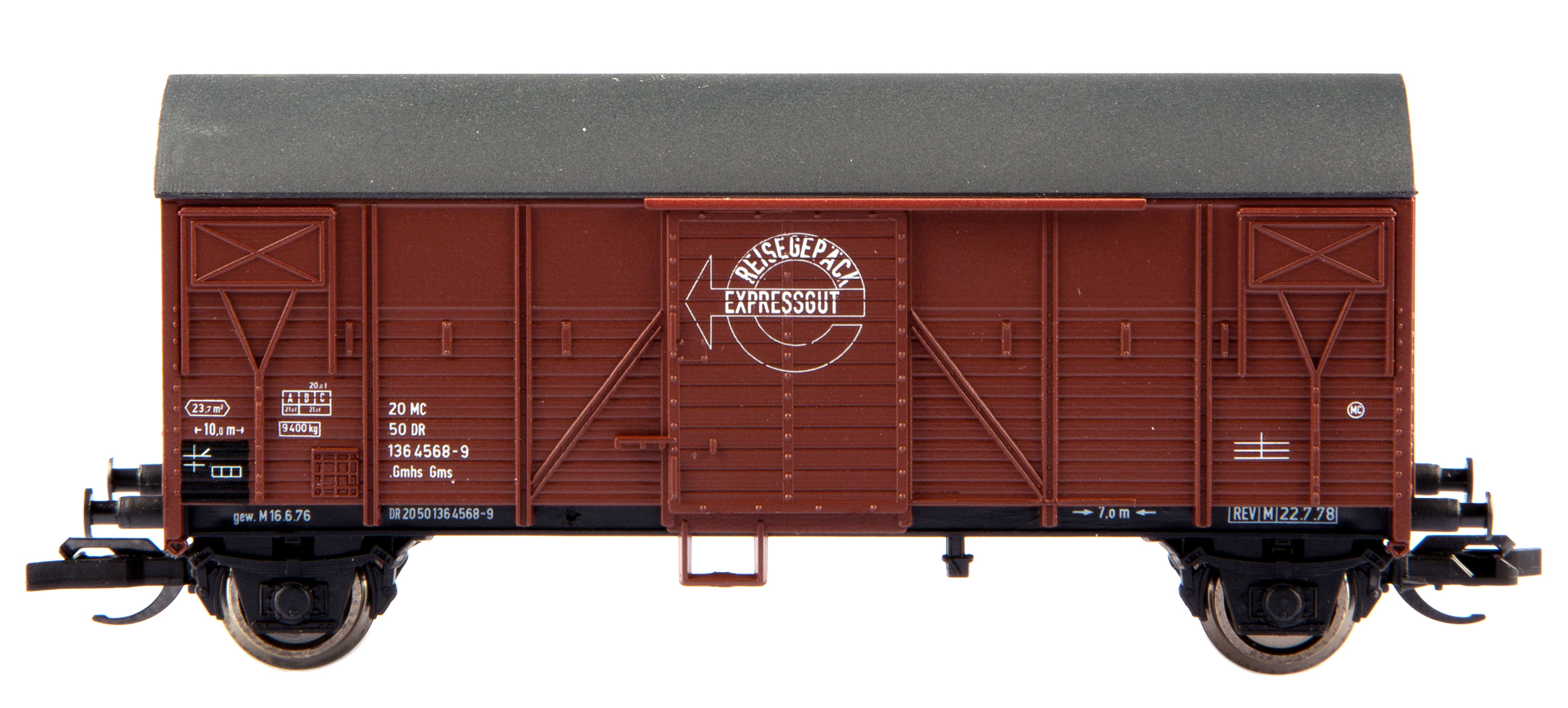 | krytý nákladní vůz červenohnědý s šedou střechou „Expressgutwagen“ |