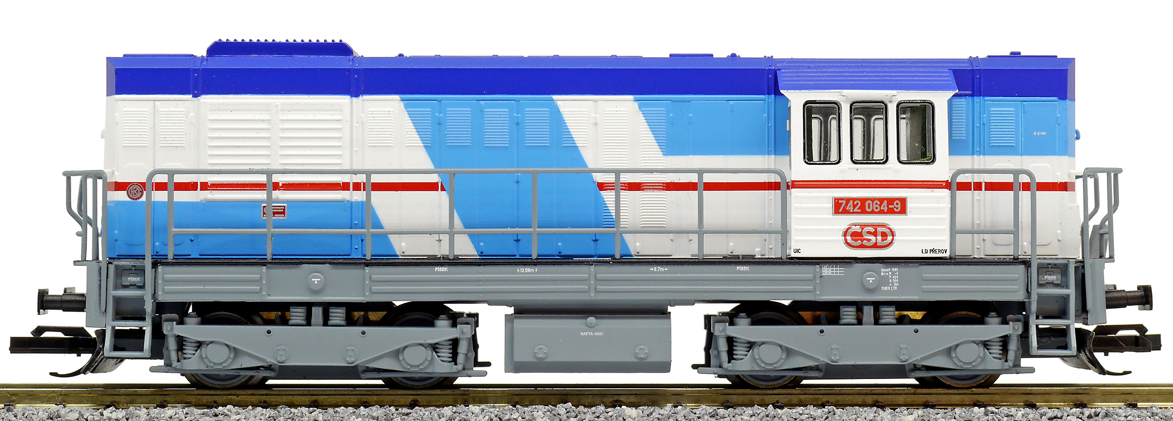 | dieselová lokomotiva modrá-bílá, šedý rám |