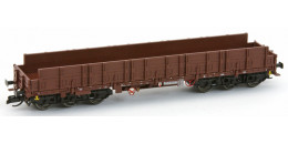 | plošinový nákladní vůz s vysokými bočními stěnami hnědý, černé podvozky |
