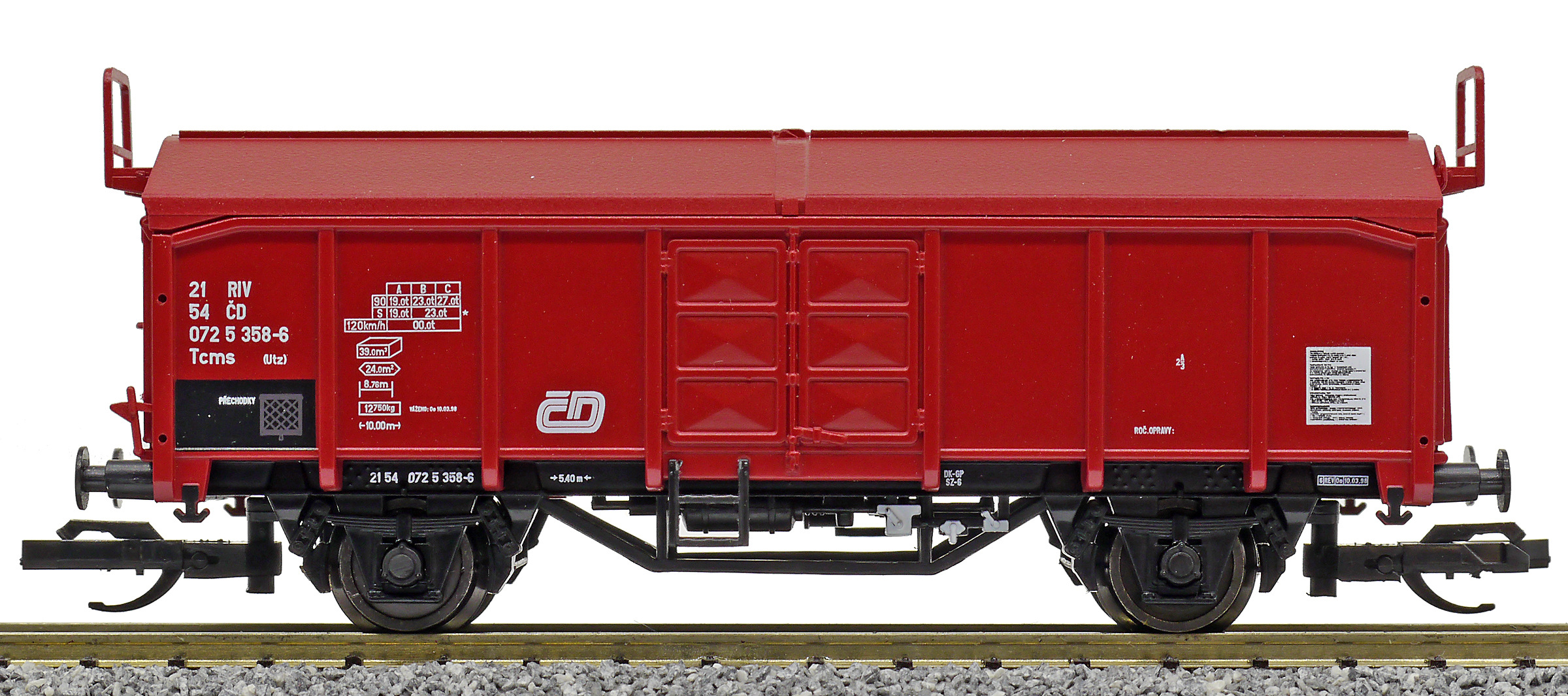 | • 21 54 072 5 358-6 | → | nákladní, nezávislé nápravy, pevný rozchod, ve vlastnictví železniční správy, RIV, PPV |