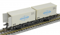 | nákladní plošinový vůz černý se dvěma 20' kontejnery „DEUTRANS“, později „DDR-CONT“ |