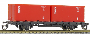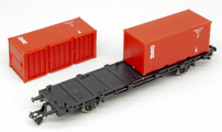| nákladní plošinový vůz černý se dvěma 20' kontejnery „DSR“ |