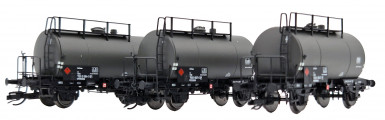 set tří tmavě šedých kotlových vozů