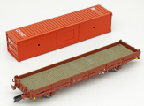 | nízkostěnný nákladní vůz červenohnědý s klanicemi s nákladem kontejneru 40' „DSR“ |