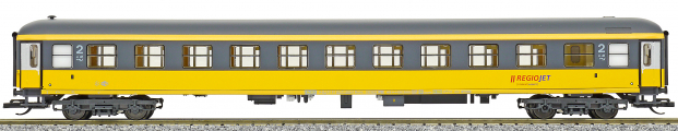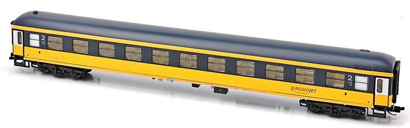 | lehátkový vůz v barevném schematu „RegioJet“ 2. tř. |